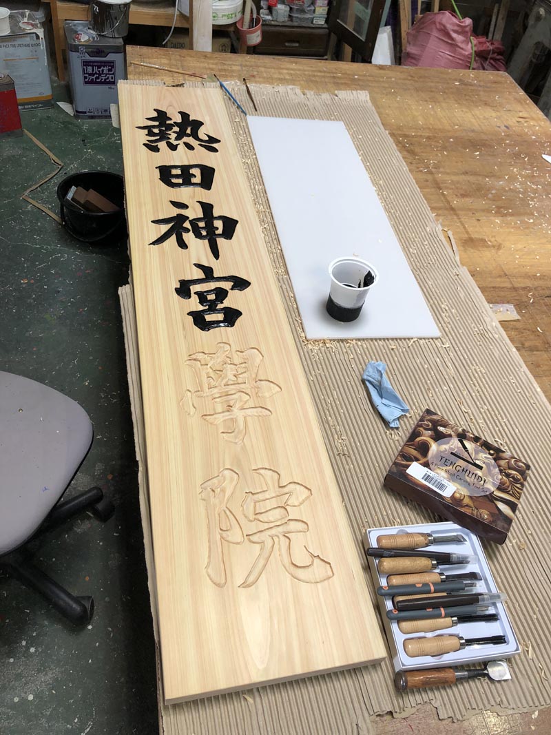 (レーザー彫り文字 墨入れ後クリヤー塗装